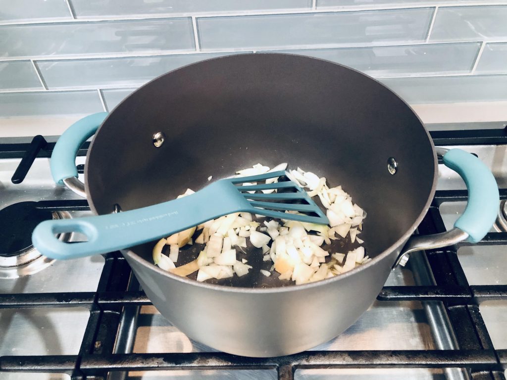 2. Dice an onion and fry until translucent. Set aside.