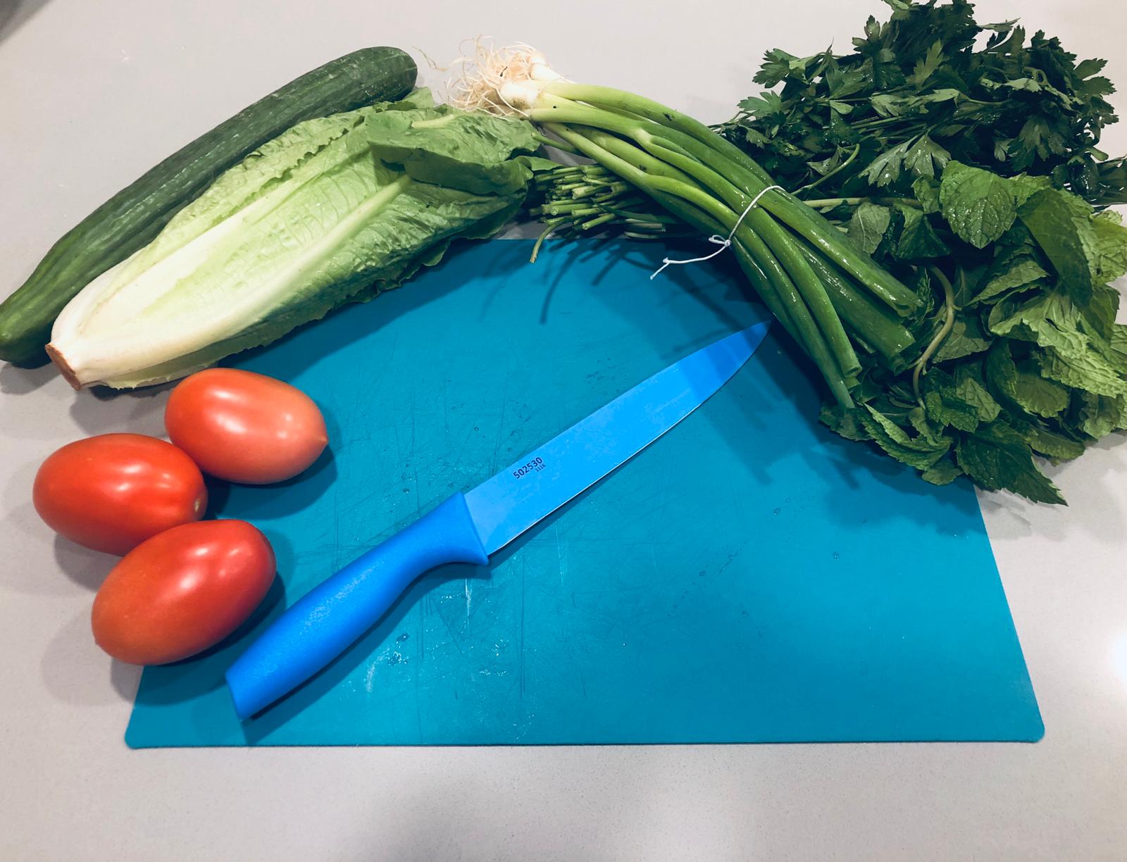 3. Cut up all vegetables and herbs and combine.