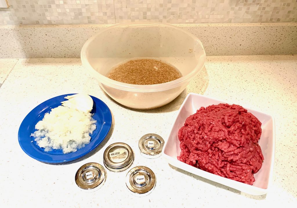 1.Grind Onion to a minced texture. Clean and dry cracked wheat and add to minced onion. Add all spices. Mix well.
